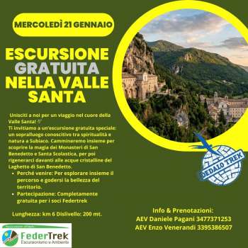 Partecipazione: Completamente gratuita per i soci Federtrekescursione