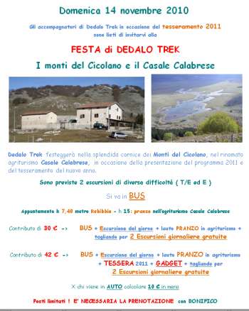 In occasione del tesseramento 2011 festeggeremo all'agriturismo Casale Calabrese dopo aver effettuato un'escursione -