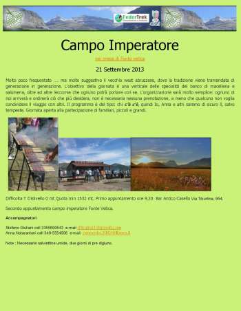 Secondo appuntamento ore 12,00 campo imperatore Fonte Vetica