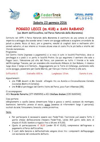l’iscrizione può essere fatta il giorno stesso dell’escursione